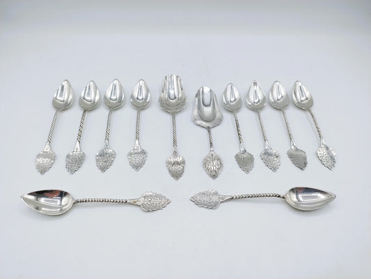 12 Zilveren theelepels, G. Huisman en G. v.d. Berg, ca. 1925