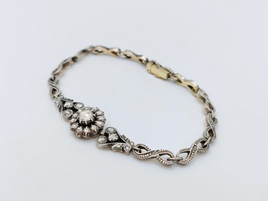 14 karaats gouden en zilveren armband met 34 roosdiamanten