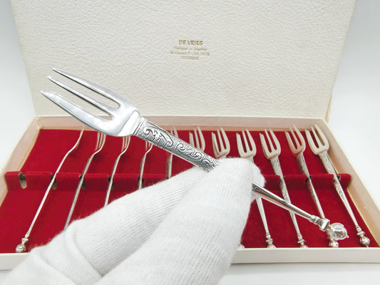 12-Delige taartvorken set in cassette, Bijkamp & Co, Steenwijk, ca. 1960.