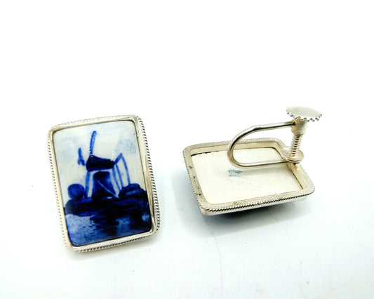 Zilveren oorbellen met keramiek, Delfts blauw, 835
