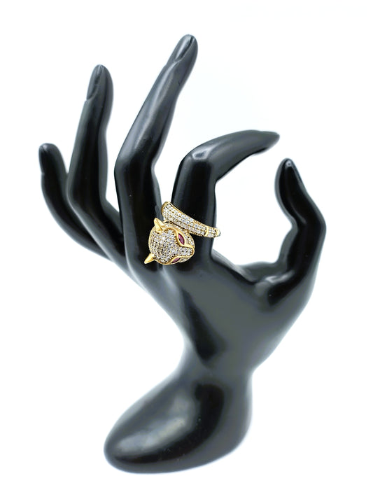 Zilveren panterring met toermalijn en zirkonia, 19 mm, brons