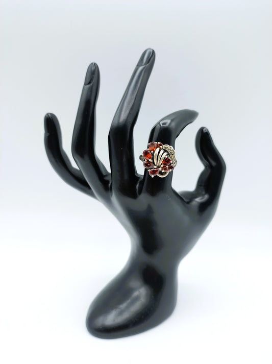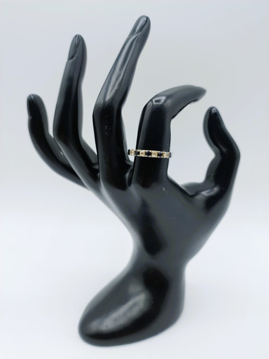Zilveren ring bezet met granaat en markasiet, 925, 18 mm.