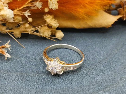 Zilveren ring bezet met zirkonia, 17 mm, 925, bloemvormig patroon