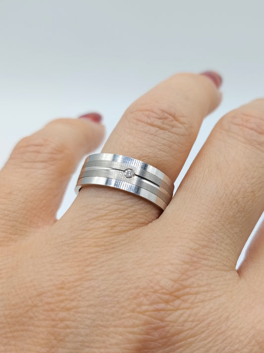 AanbiedingZilveren ring met diamant, 925, 17 mm