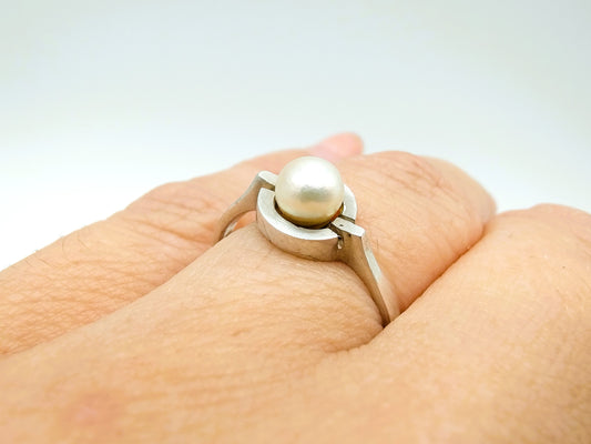 Zilveren ring met parel, A.W.G. Wels, Amsterdam, 18 mm