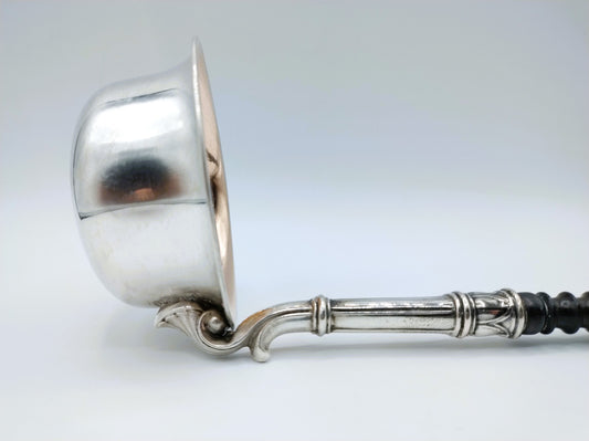 Zilveren soeplepel met ebbenhouten handvat, Empire.