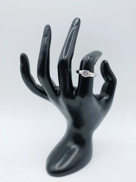 Zilveren solitairring met zirkonia, 18,5 mm.