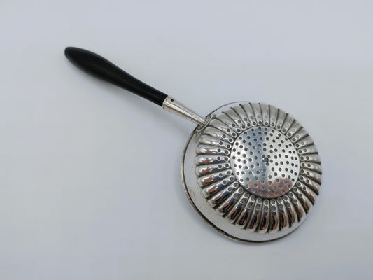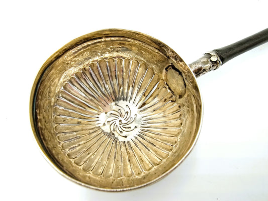 Zilveren strooilepel met ebbenhouten steel, 18e eeuws