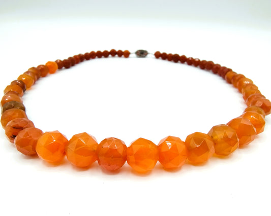 Boerengranaten ketting met een zilveren bolslot, A. de Groot, Schoonhoven, 67 cm