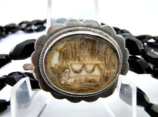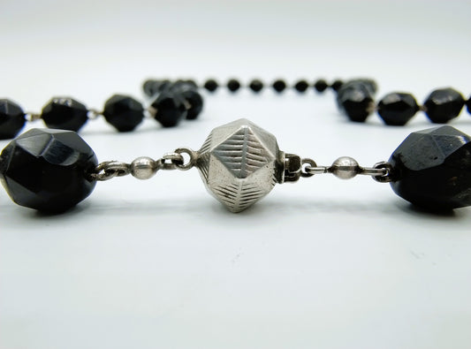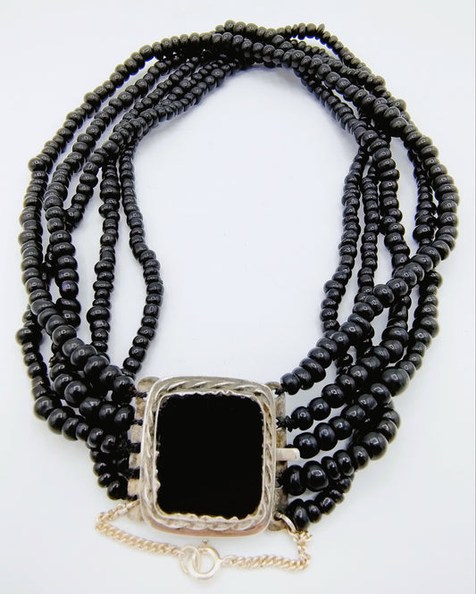 Gitten ketting met zilveren slot met Onyx, Nederland, 19e eeuws