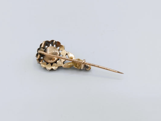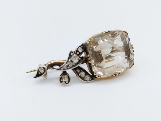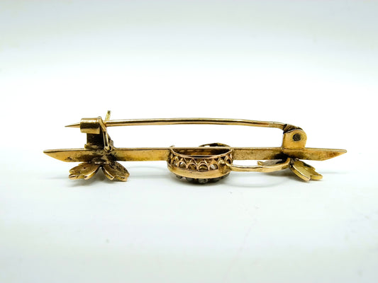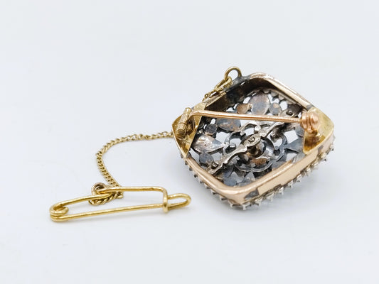 Gouden broche bezet met 9 roosdiamanten in zilver gezet, 19e eeuws