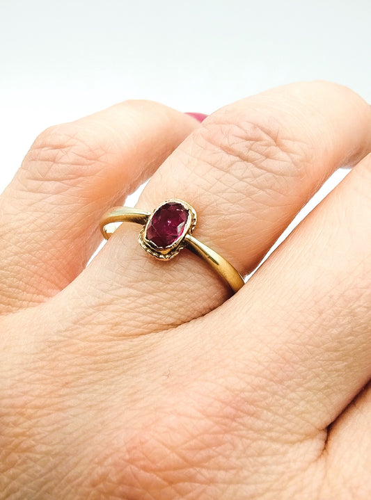 UitverkochtGouden ring met 4 granaten, 14 karaats, 17,5 mm.