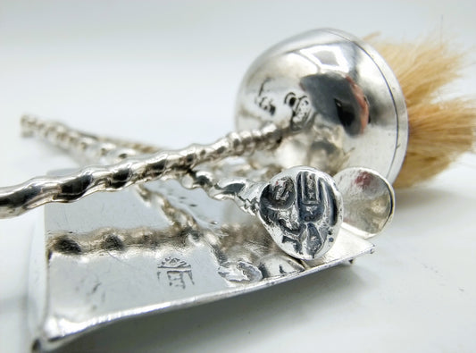 3-Delig zilveren miniatuur haardstel, o.a. Jan Borduur, Amsterdam, 1738