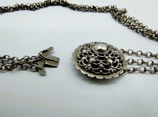 3 Rijige zilveren jasseroncollier met zilveren slot, 43 cm.