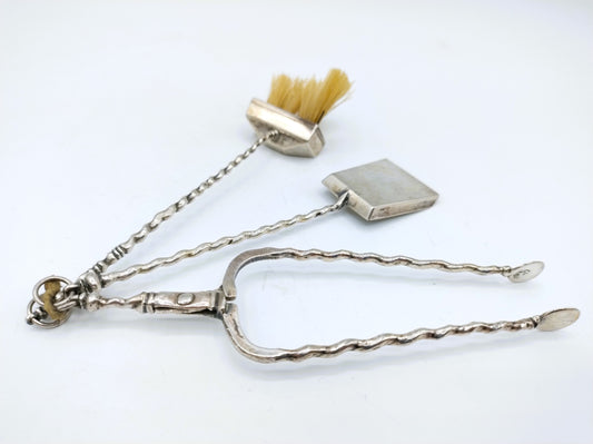 3-Delig zilveren miniatuur haardstel, o.a. Pieter Snijder, Haarlem, 1734