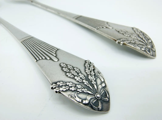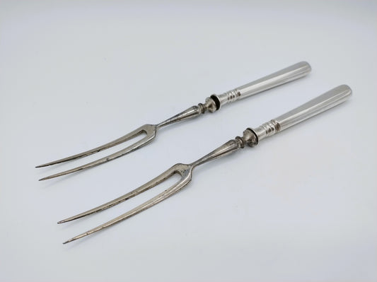 2 Zilveren vleesvorken, art nouveau, Fa. J.M. van Kempen, Voorschoten, ca. 1900