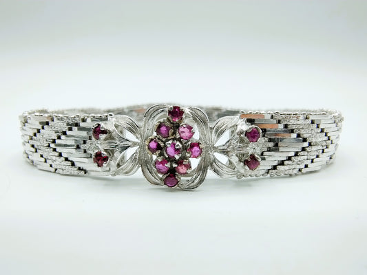 Vintage zilveren armband met rode steentjes, 18,5 cm.