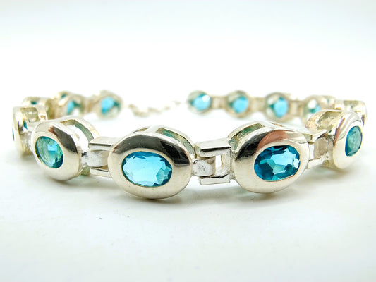 Zilveren armband met gefacetteerde blauwe topaas, 925