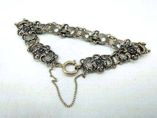 Filigrein zilveren armband met vergulde bloemen, 20 cm.