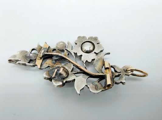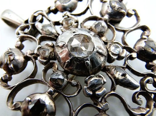 Zilveren hanger / broche bezet met 15 roosdiamanten, 19e eeuws