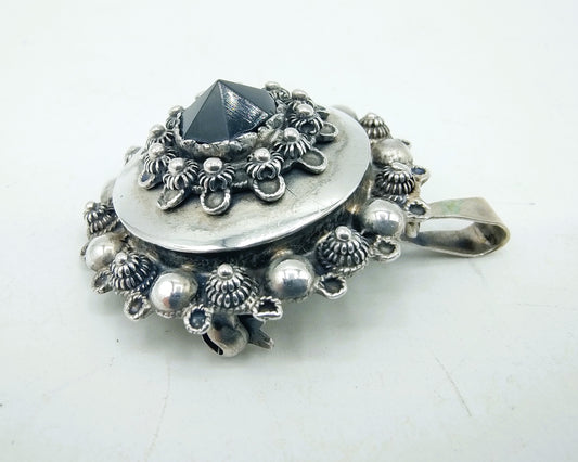 Zilveren broche of hanger bezet met Zeeuwse knopjes en een git.