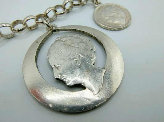 Zilveren jasseronketting met wilhemina munten, 77 cm