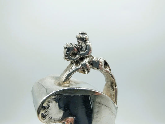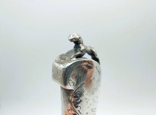 Zilveren mesheft (vrouwe Justitia) met stalen lemmet, 17e eeuws