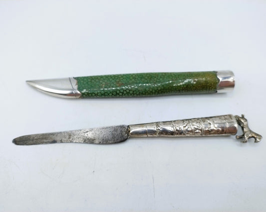 Mes met zilveren heft in roggelederen schede, Amsterdam (?), 18e eeuws