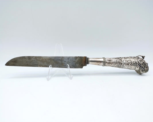 Zilveren mesheft met originele stalen lemmet, 18e eeuws