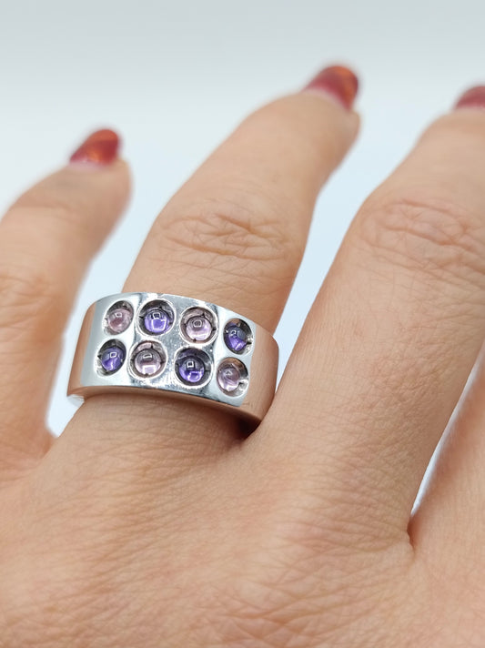 Zilveren ring met 9 kleurstenen, Amsterdam, 925, 18 mm