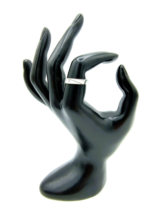 Mat / gladde zilveren ring met diamant, 17.5 mm
