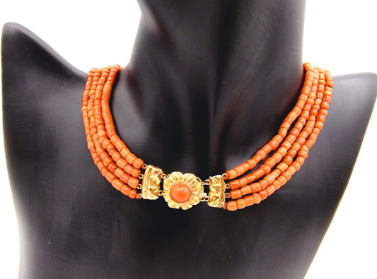 Rote Korallenkette mit Goldverschluss, 19. Jahrhundert
