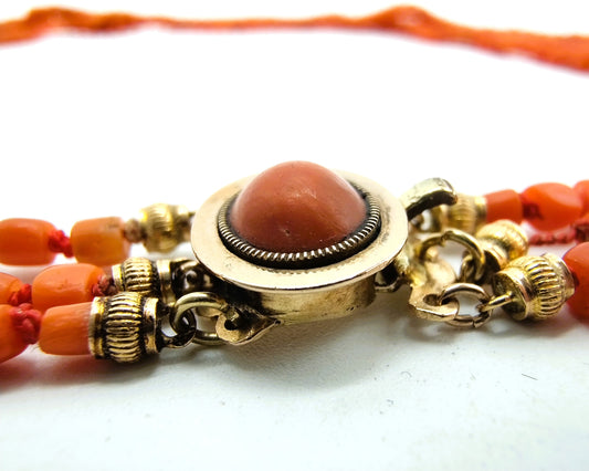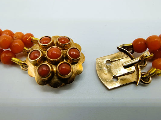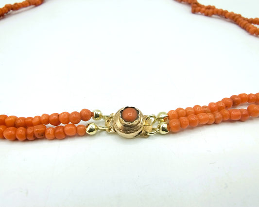 Rote Korallenkette, 2-strängig, mit Goldverschluss, 19. Jahrhundert
