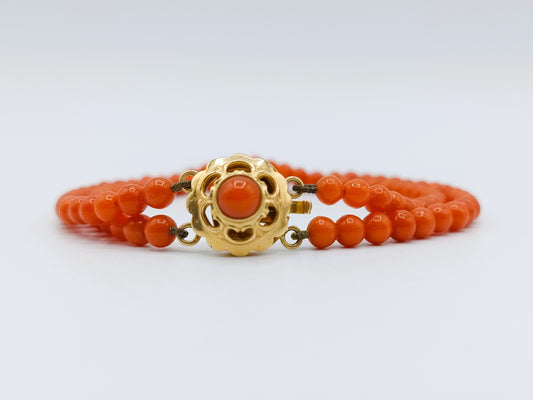 Blutkorallenarmband mit 3-teiligem Goldverschluss, 20 cm.