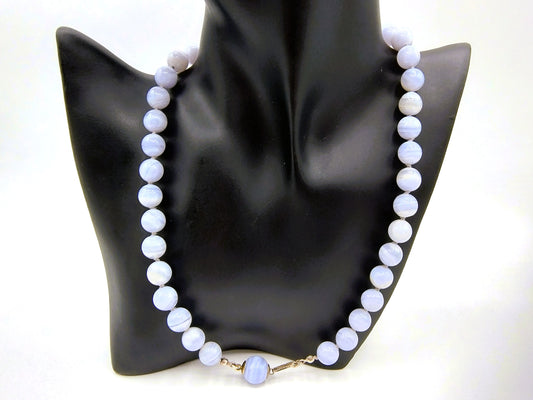 Halskette aus blauem Achat mit silbernem Verschluss, 48 cm