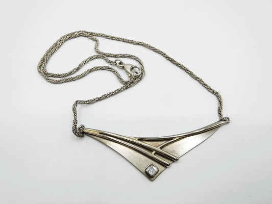 Silberne Kordelkette mit V-Anhänger, 42,5 cm.