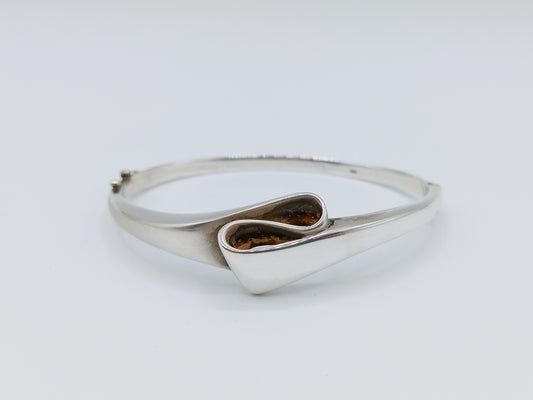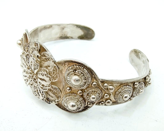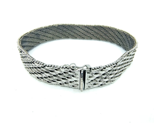 Silberner breiter Armreif, filigran, Zeeland-Knopf