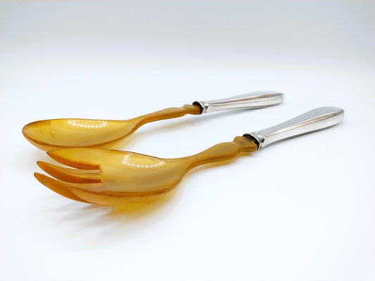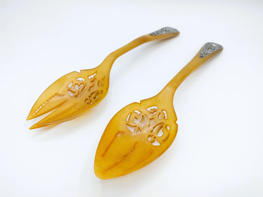 Salatbesteck aus Horn mit Beschlägen aus Djokja-Silber