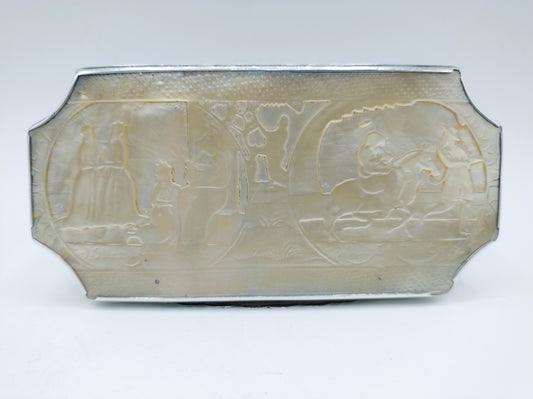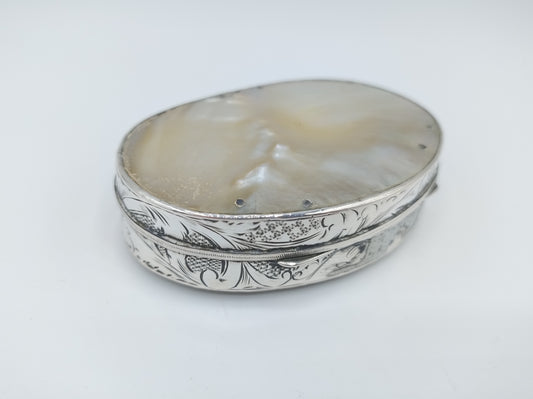Niederländische silberne Schnupftabakdose mit Perlmutt, ca. 1800