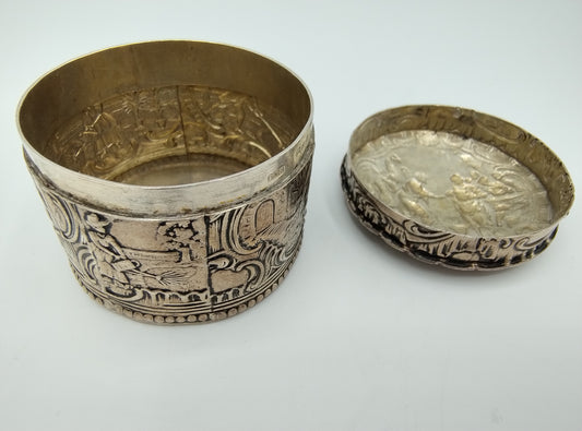 Reich verzierte silberne Deckeldose, 285 Gramm.