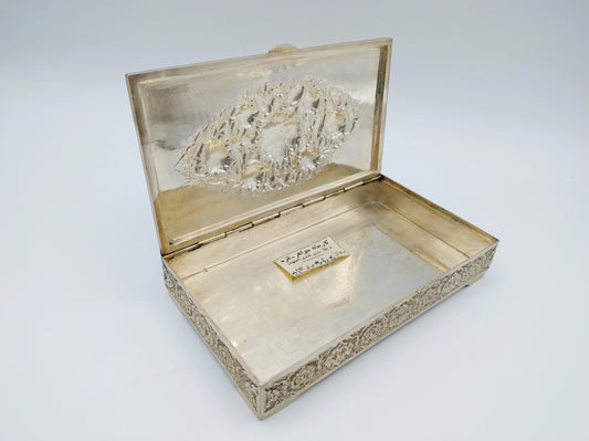 Silberne Zigarrenkiste mit Holzinterieur, Malaysia.