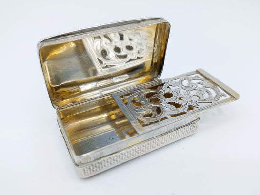 Silberne Pfefferminzdose mit Silberfiligran, C. Capoen, Schoonhoven, 1917