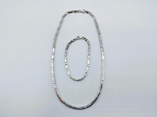 Silberkette + Armband, Designglied, 925