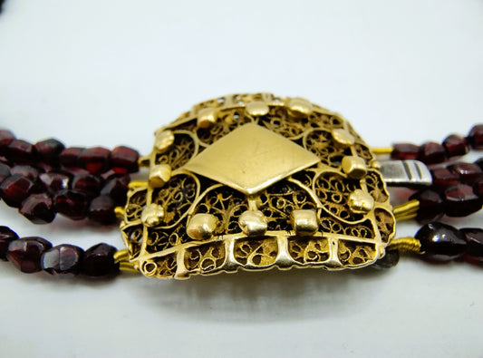Granathalskette mit einem Verschluss aus 18 Karat Gold. 39,5 cm.