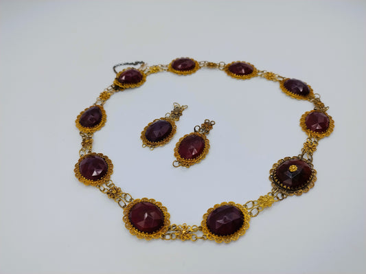 Silberkette und Ohrringe mit Blutkoralle, 42 cm