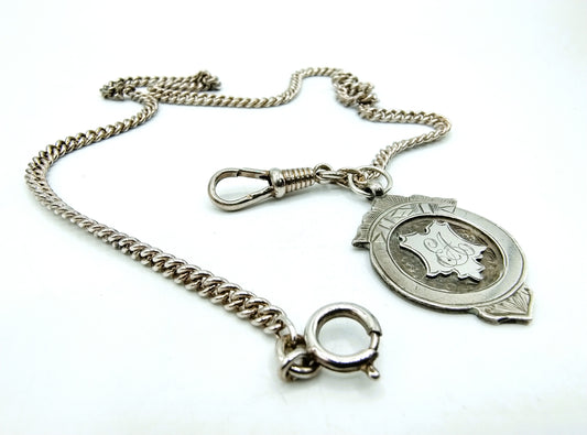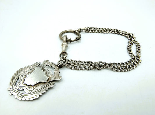 Silberne Uhrenkette mit Schild, H. Brothers, Birmingham, 1913