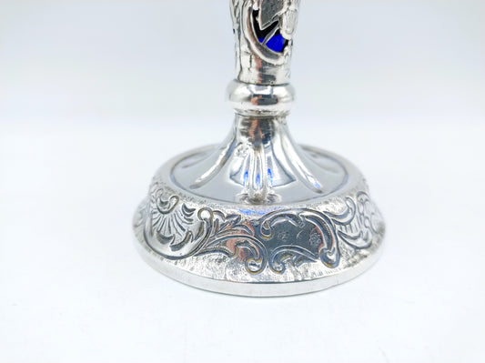 Silberne Blumenvase mit blauem Glas, Niederlande, 1925