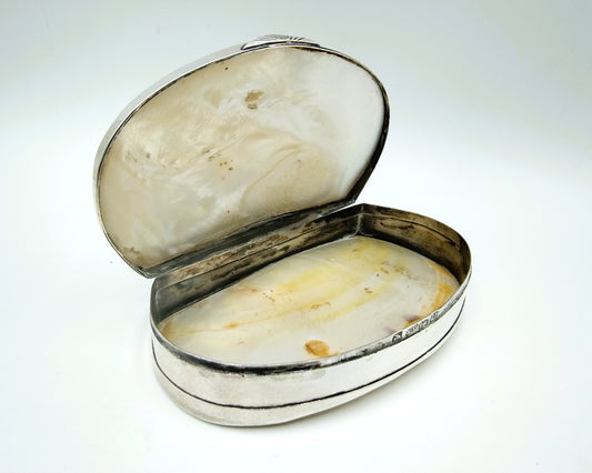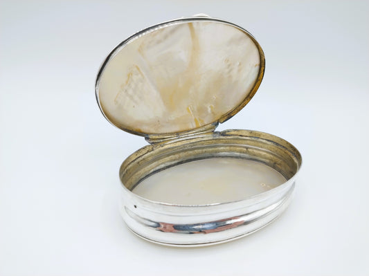 Niederländische silberne Tabakdose mit Perlmutt, ca. 1750