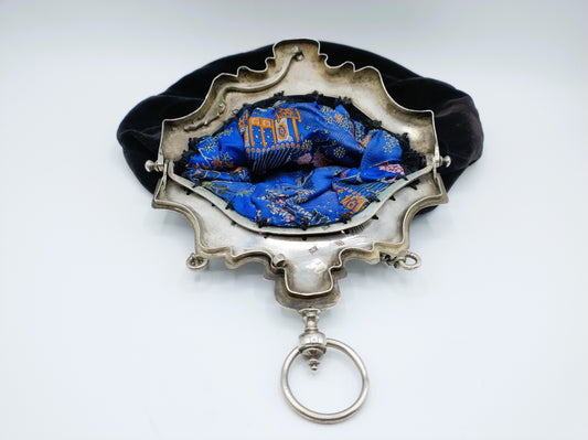 Silberner Geldbeutelverschluss mit Samtbeutel, A. Offringa, Huizum, 1797