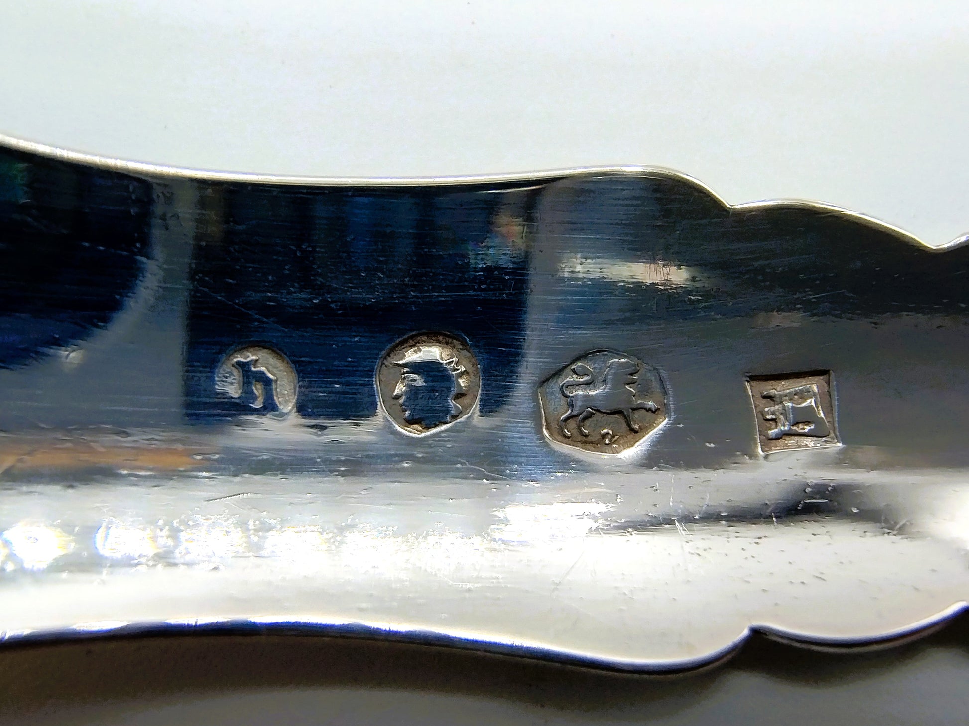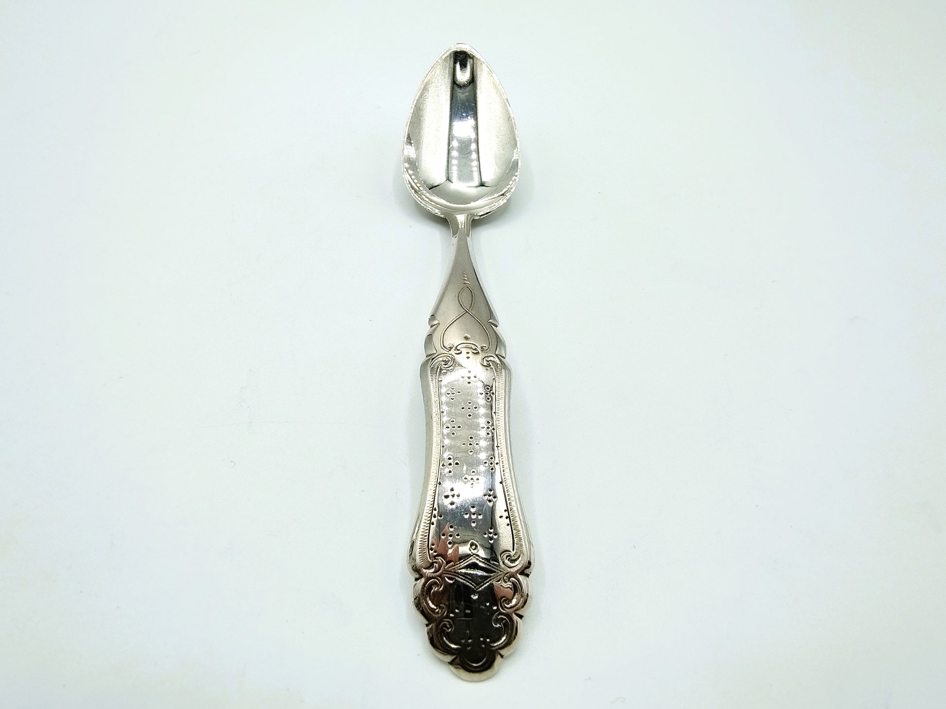 Die Löffel sind mit der Meistermarke K in Burcht, dem zweiten Qualitätszeichen, dem Minerva-Kopf und dem Jahresbuchstaben h für 1867 gekennzeichnet.